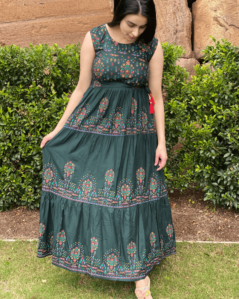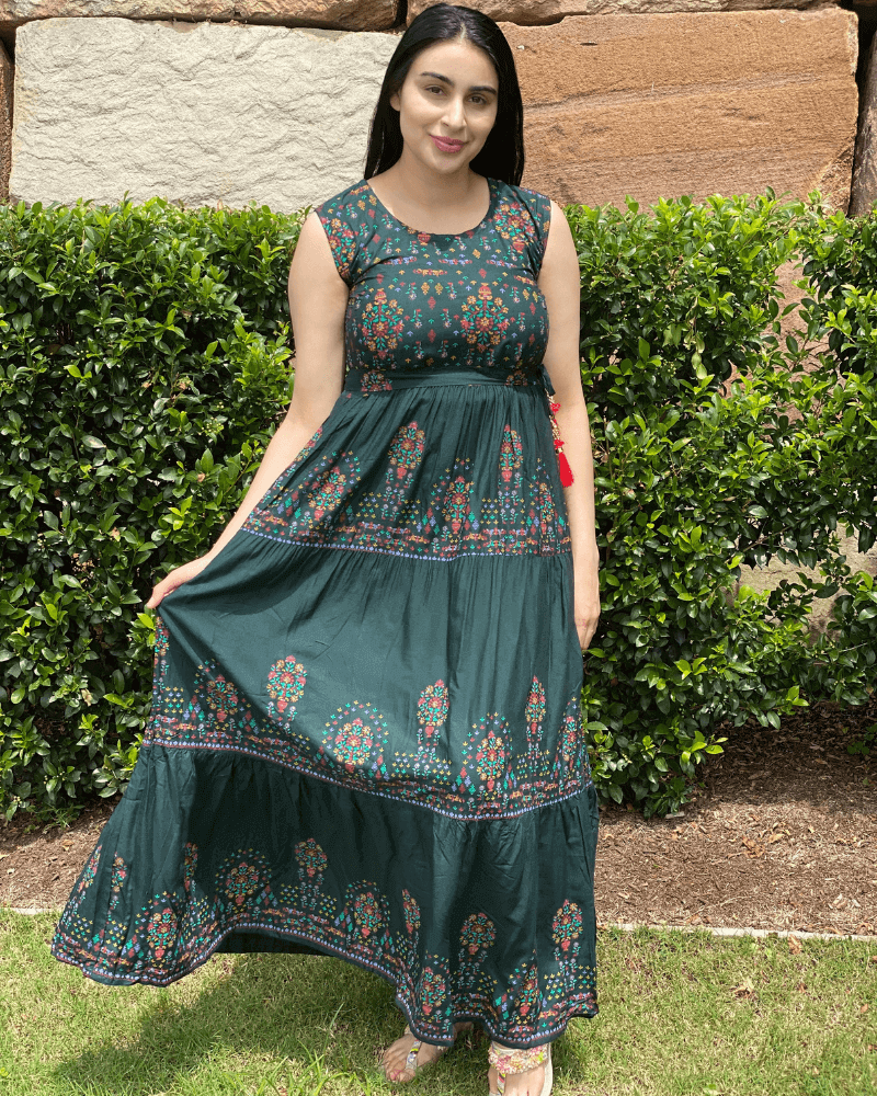 Aisha Print Maxi Dress – Green