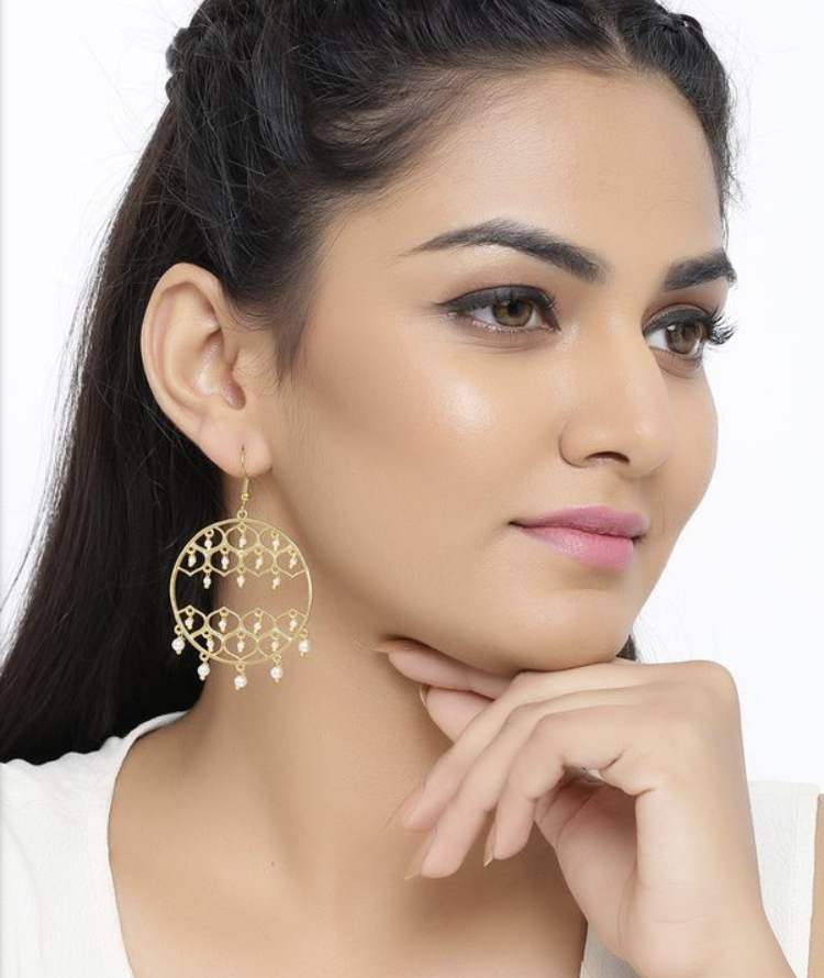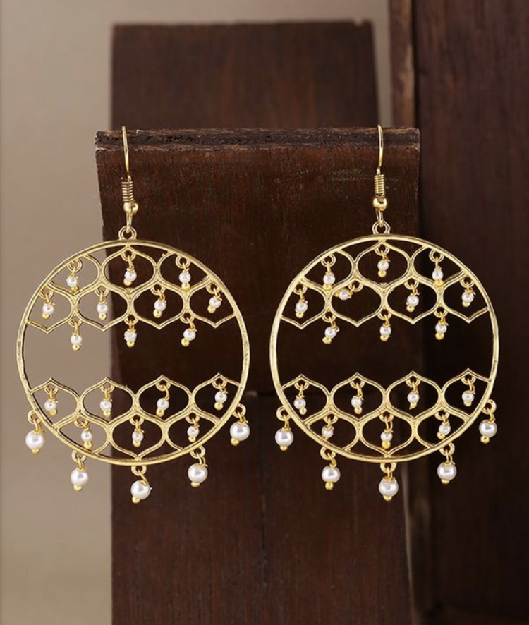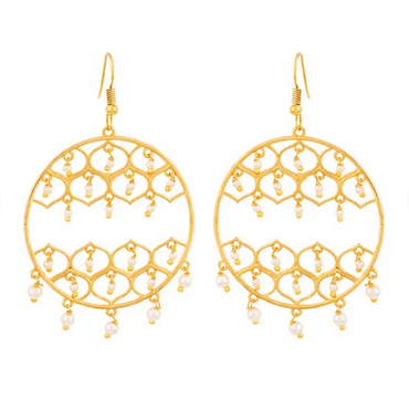 Faux pearls embellished earrings made from brass and yellow gold plated.