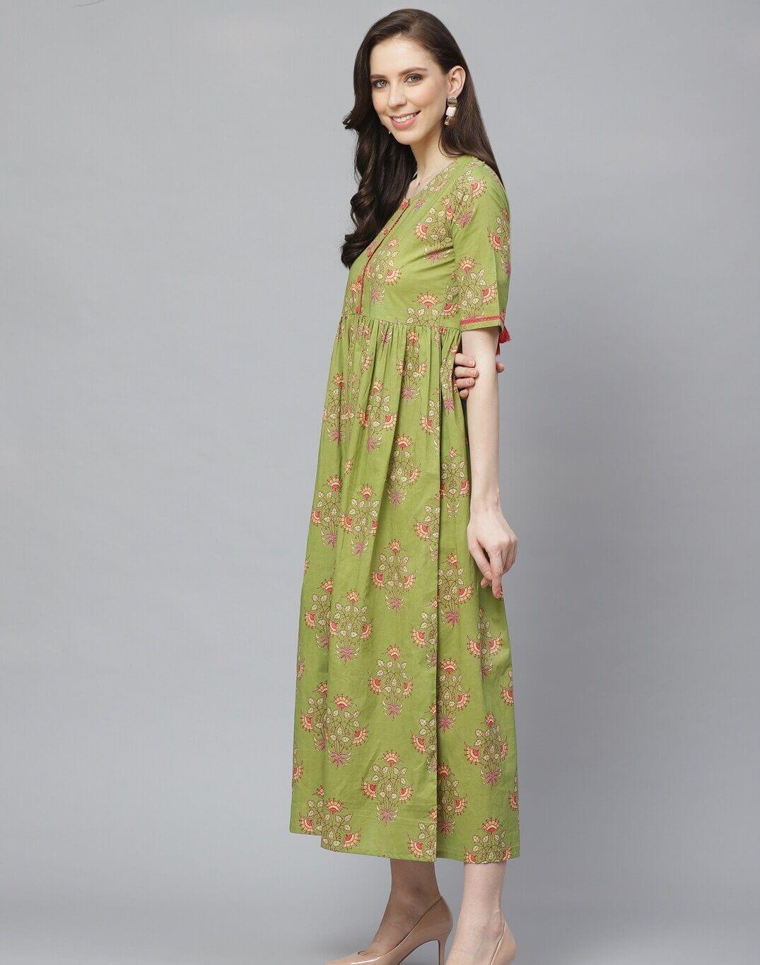 Maya Print Midi Dress – Green