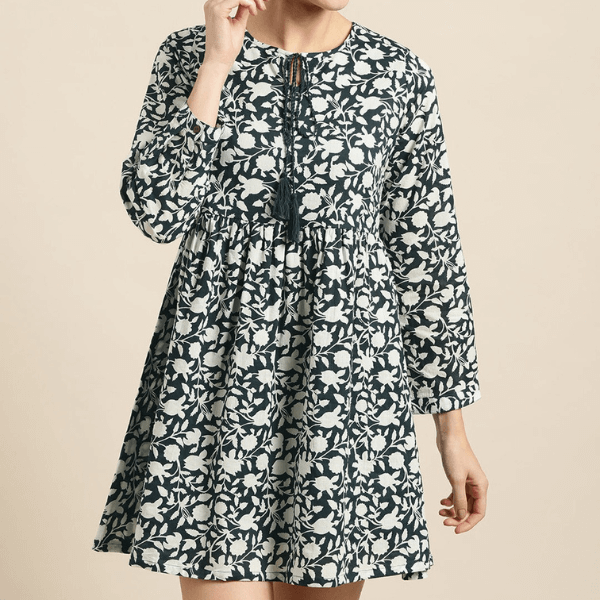 Flow and twirl effortlessly all day long with our gorgeous Shae mini dress! Adorned with full block printed florals and flattering long sleeves, you can dress this up or down to match any season.